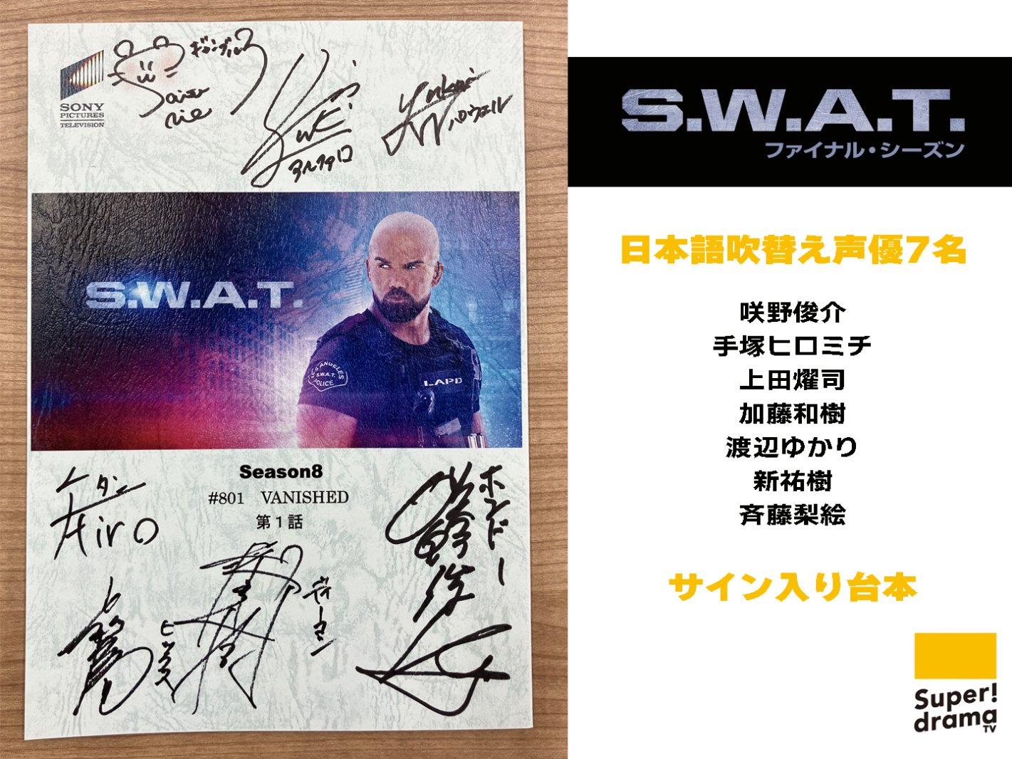 海外ドラマ「S.W.A.T.」日本語吹替え声優サイン入り台本、オリジナルTシャツ